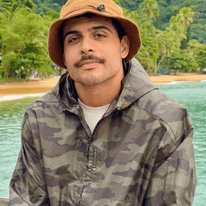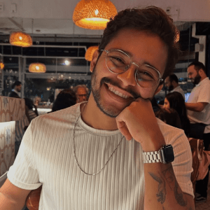 Nos vimos de longe, em uma pracinha, em meio a uma roda de amigos… até que um “tiro” de arma de água mudou tudo. Entre risadas e surpresa, veio o primeiro beijo — e, desde então, nunca mais nos desgrudamos.